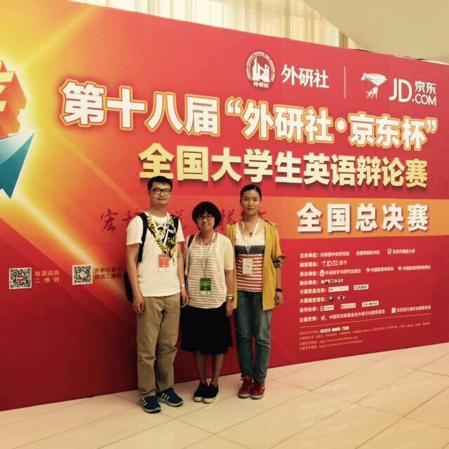 初夏的北京晴空万里,阳光明媚。由上海大学外国语学院英语系教师朱音尔博士带队,英语系顾文冉同学和理学院张颖同学组成的英语辩论队参加5月18日至24日在京举办的第十八届"外研社·京东杯"全国大学生英语辩论赛全国总决赛,并在比赛中喜获佳绩!