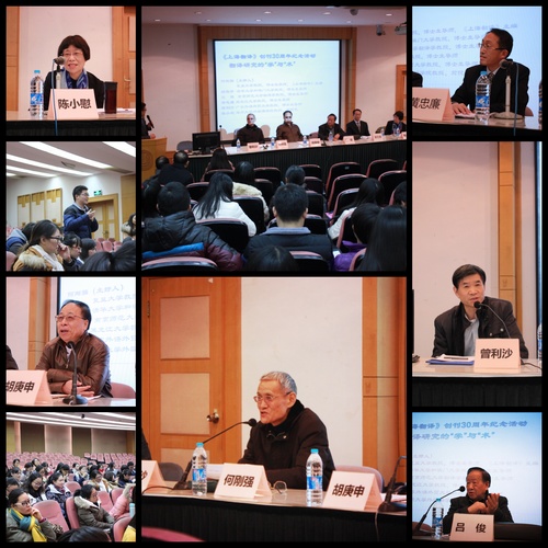 2015年12月18日下午,上海大学研究生学术品牌活动"泮池言学"之外国语学院第十二讲——翻译研究的"学"与"术",于上海大学校本部J楼103讲堂成功举行。本次论坛迎来了国内翻译研究名家胡庚申(清华大学和澳门大学教授、博士生导师)、吕俊(南京师范大学翻译学教授、博士生导师)、黄忠廉(黑龙江大学教授、博士生导师)、曾利沙(广东外语外贸大学教授、博士生导师)和陈小慰(福建大学外国语学院教授),他们远道而来,不仅在《上海翻译》创刊30周年之际献上他们的祝福和期望,作为中国翻译界的长辈,他们还与上海大学外国语学院的研究生们共同探讨了翻译研究的"学"与"术"的关系问题,分析了中国翻译界面临的机遇和挑战。
