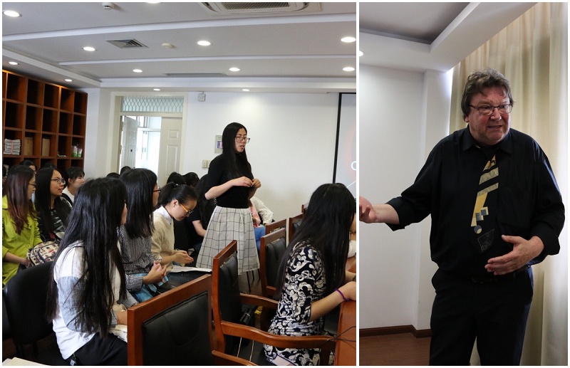 应《上海翻译》编辑部的邀请,国际译联会刊Babel主编 Frans De Laet教授于5月21日—24日访问上海大学,期间开展了一系列交流与会谈,并于5月23日上午做客外语学院"重建巴别塔"系列讲坛,为师生带来了一场题为"Modern Translation, Interpreting & Linguistic Mediation in East and West"的精彩讲座。本次讲座由外国语学院副院长邓志勇教授主持,出席嘉宾有外国语学院副院长苗福光副教授以及吴攸、袁丽梅、郁菊芬、王颖、陈秀猛、孙序等多位中青年骨干教师,部分翻译和英美文学专业的研究生参加了本次讲座。