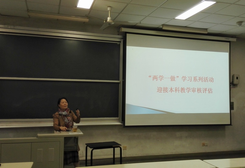 2016年6月3日,外国语学院党委书记施雯结合本科教学审核评估,为全体党员师生上了一堂生动的党课。施雯书记从为什么开展"两学一做"学习教育谈起,指出开展"两学一做"学习教育,是贯彻中央全面从严治党要求的重要部署,是推进思想政治建设常态化的重要实践,也是建设高水平大学的内在需求。学院各党支部要根据学校党委的总体部署,以高度的责任感、主动扎实和创造性地开展好学习教育。