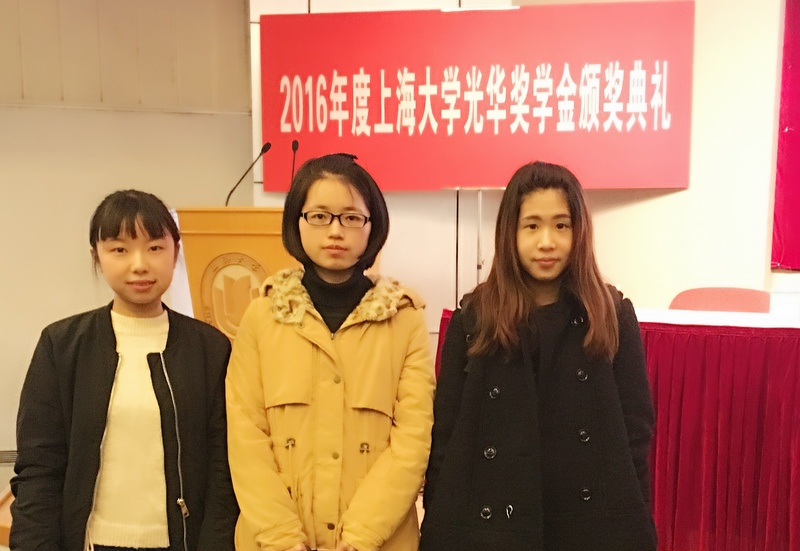 2015-2016年度我校共有310名学生获此奖学金,我院共有3名本科生获此荣誉,分别是2013级的张璐、2013级的王秀秀和2014级的周文佳。
