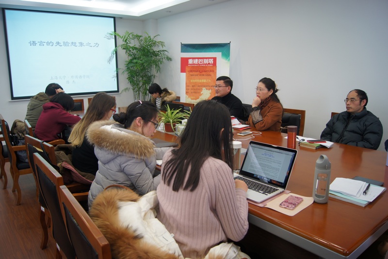 2月23日下午, C楼512会议室座无虚席,外国语学院迎来了2017年"重建巴别塔"青年博士讲坛的首场讲座,我院副教授陈杰博士以"语言的先验想象之力"为主题,带领大家再度领略了语言的魅力。外国语学院副院长邓志勇教授、外语教育研究中心主任张新玲副教授、英语系副主任黄欣副教授、朱音尔副教授等多位老师以及学院研究生参加了本次学术交流活动,讲座由张新玲副教授主持。