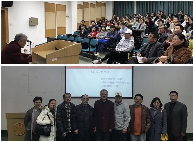 3月3日下午,复旦大学教授、上海市科技翻译学会理事长、《上海翻译》主编何刚强教授应上海大学外国语学院教育研究中心和翻译研究中心邀请,为外国语学院师生做了一场题为" '人才'与'学识'之我见——兼谈英语(翻译)学习与前程选择"的讲座。讲座由《上海翻译》副主编、外国语学院傅敬民教授主持,来自外国语学院的百余名教师和研究生参加此次讲座。出席讲座的还有外国语学院副院长邓志勇教授、副院长苗福光副教授、外国语学院英语系主任肖福寿教授、黄欣副教授、外语教育研究中心主任张新玲博士、李晓媛博士等。此外,还有多名其他院系学生慕名而来,讲座现场座无虚席、气氛活跃。