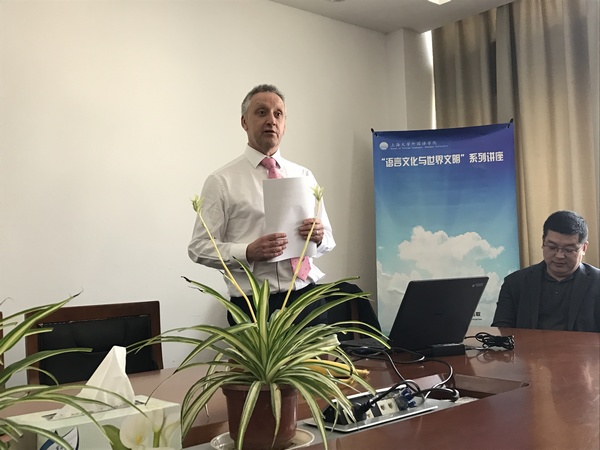 3月9日下午,伦敦布鲁内尔大学人文社科学院副院长西恩·福尔摩斯(Sean Holmes)教授做客外国语学院"泮池言学",解析"千面福尔摩斯"。外国语学院副院长邓志勇教授、苗福光副教授、公共外交研究院张丹华副院长、外国语学院尚晓进教授、曾桂娥副教授、叶新博士等多位老师及中外学生参加了本次学术交流活动。讲座由苗福光副院长主持。