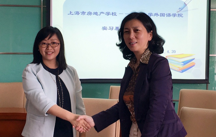 4月20日,上海大学外国语学院和上海房地产学校在房地产学校南楼B楼会议室举行了教学实习基地合作的签约仪式。上海房地产学校副校长林月晖、组织人事科科长曹蓉、教务科副科长孙笑宇,我院党委副书记曾桂娥与负责就业的邹琴、马思涵老师等共同参加本次签约仪式。
