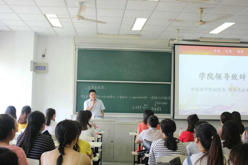9月10日下午1点,外国语学院2017级研究生新生开学典礼暨首日教育在CJ204举行。外国语学院副院长苗福光、教学秘书曹明霞以及研究生辅导员马思涵出席了本次典礼。此次开学典礼恰逢教师佳节,党团学学生干部首先代表全体研究生向出席典礼的老师献花,以此表达感激之情。学院研究生党总支副书记刘瑶首先向新生介绍了外国语学院的概况及办学特色。