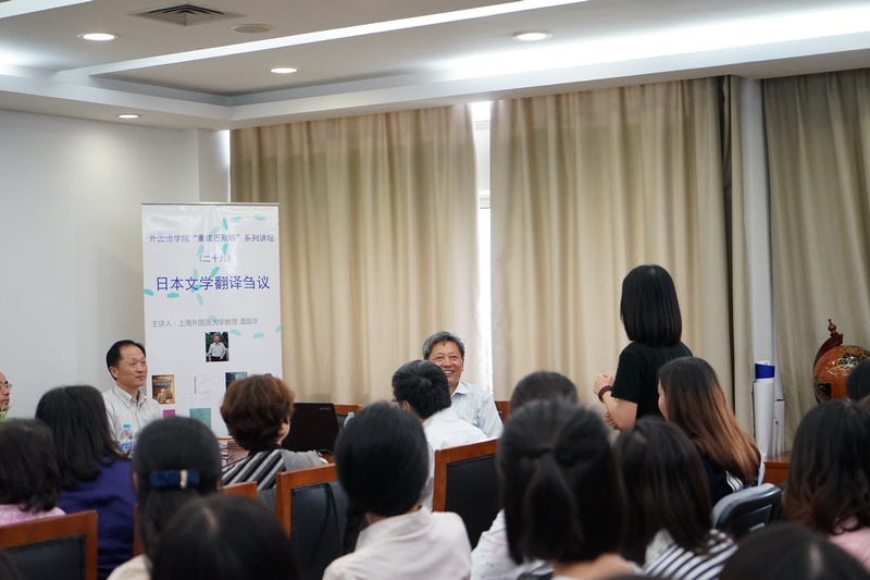 9月29日下午,作为外国语学院"重建巴别塔"系列讲坛第二十九讲,日语系邀请到中国日本文学研究会会长、上海翻译家协会会长、上海外国语大学谭晶华教授,在C512开设了题为《日本文学翻译刍议》的学术讲座。此次讲座由日语系李晓光老师主持,外国语学院副院长邓志勇教授致欢迎辞。日语系教师和研究生到场聆听学习。