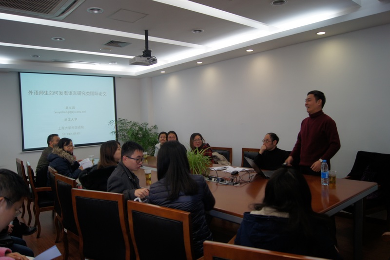 12月8日下午1:30,浙江大学外语学院博士生导师吴义诚教授应邀做客外国语学院"语言文化与世界文明"系列讲坛(第十八讲),为外国语学院师生做了题为"外语师生如何发表语言研究类国际论文"的精彩讲座,讲座由邓志勇副院长主持。