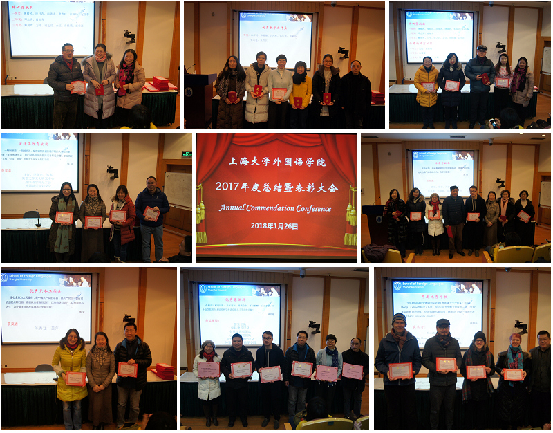 外国语学院2017年度年终总结表彰大会于2018年1月26日下午在J楼201举行,会议由外国语学院党委副书记曾桂娥主持,外国语学院党政领导、全体中外教职员工参加了表彰会。