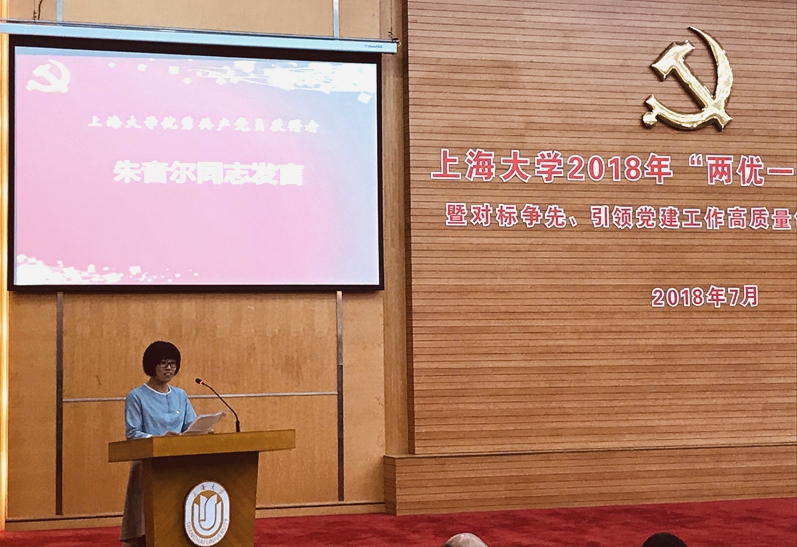 7月11上午,上海大学2018年"两优一先"表彰会暨对标争先、引领党建工作高质量创新发展推进会在图书馆报告厅举行,外国语学院斩获多项殊荣:外国语学院教工第三党支部荣获"上海大学先进基层党组织"称号、陈秀猛同志荣获"上海大学优秀党务工作者"称号、朱音尔同志荣获"上海大学优秀共产党员"称号,并作为优秀党员代表做交流发言。