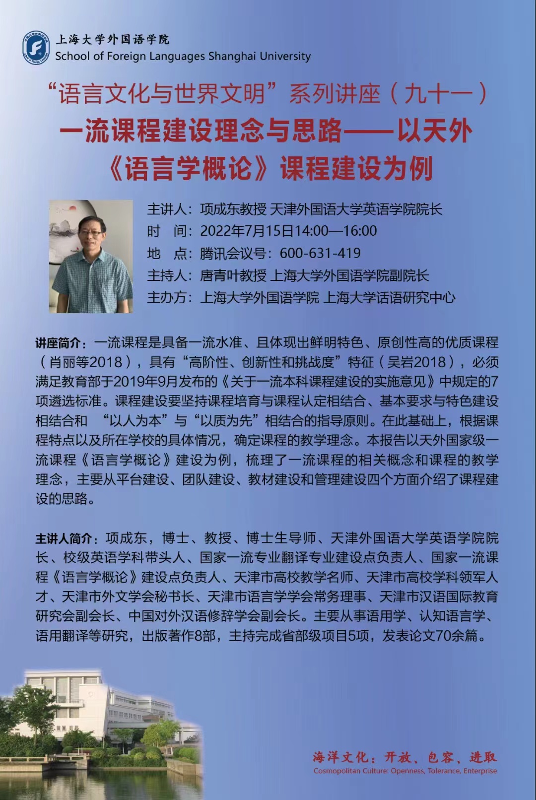 语言文化与世界文明系列讲座(九十一)一流课程建设理念与思路——以天外《语言学概论》课程建设为例