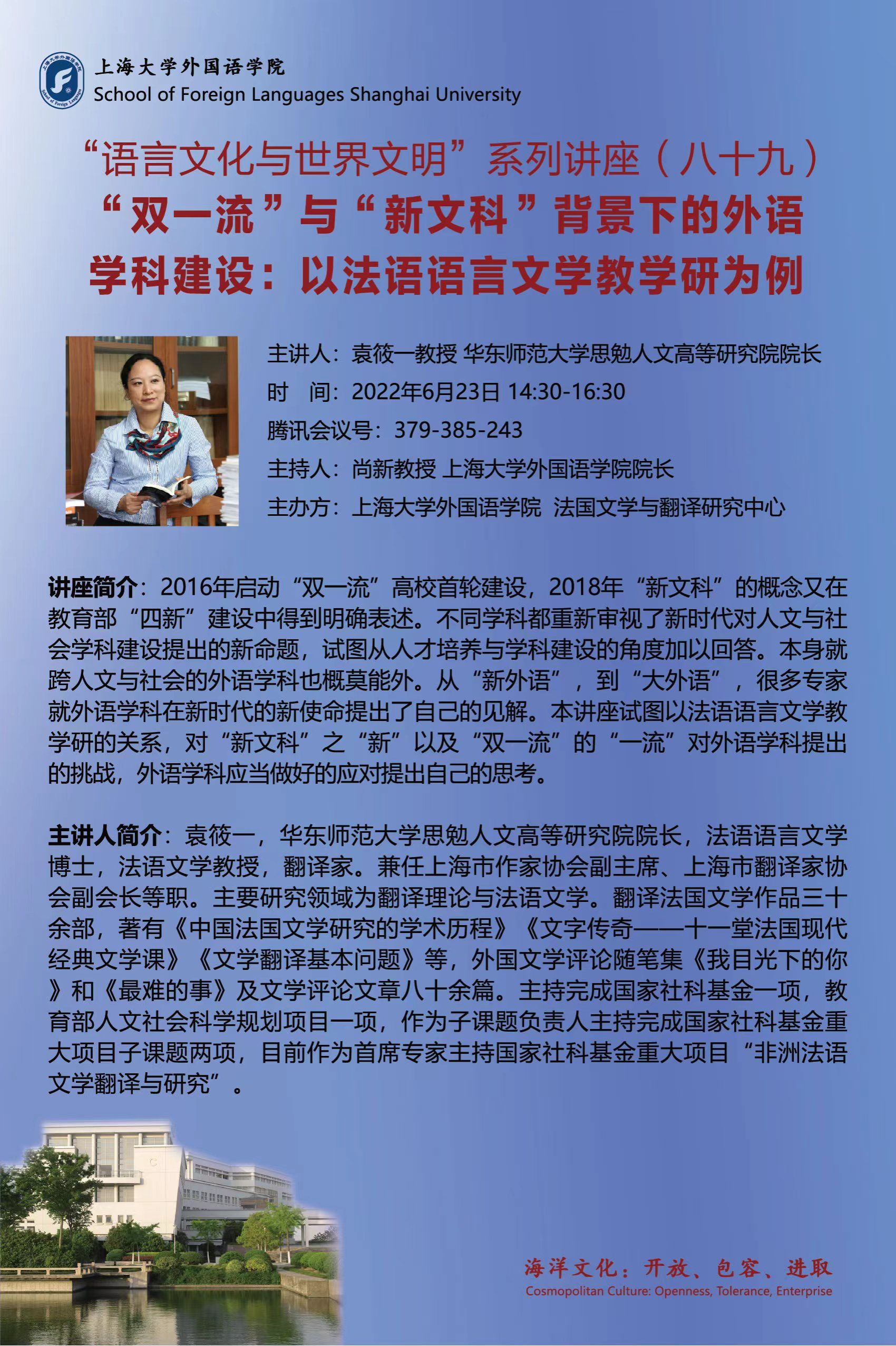 语言文化与世界文明系列讲座(八十九)“双一流”与“新文科”背景下的外语学科建设:以法语语言文学教学研为例