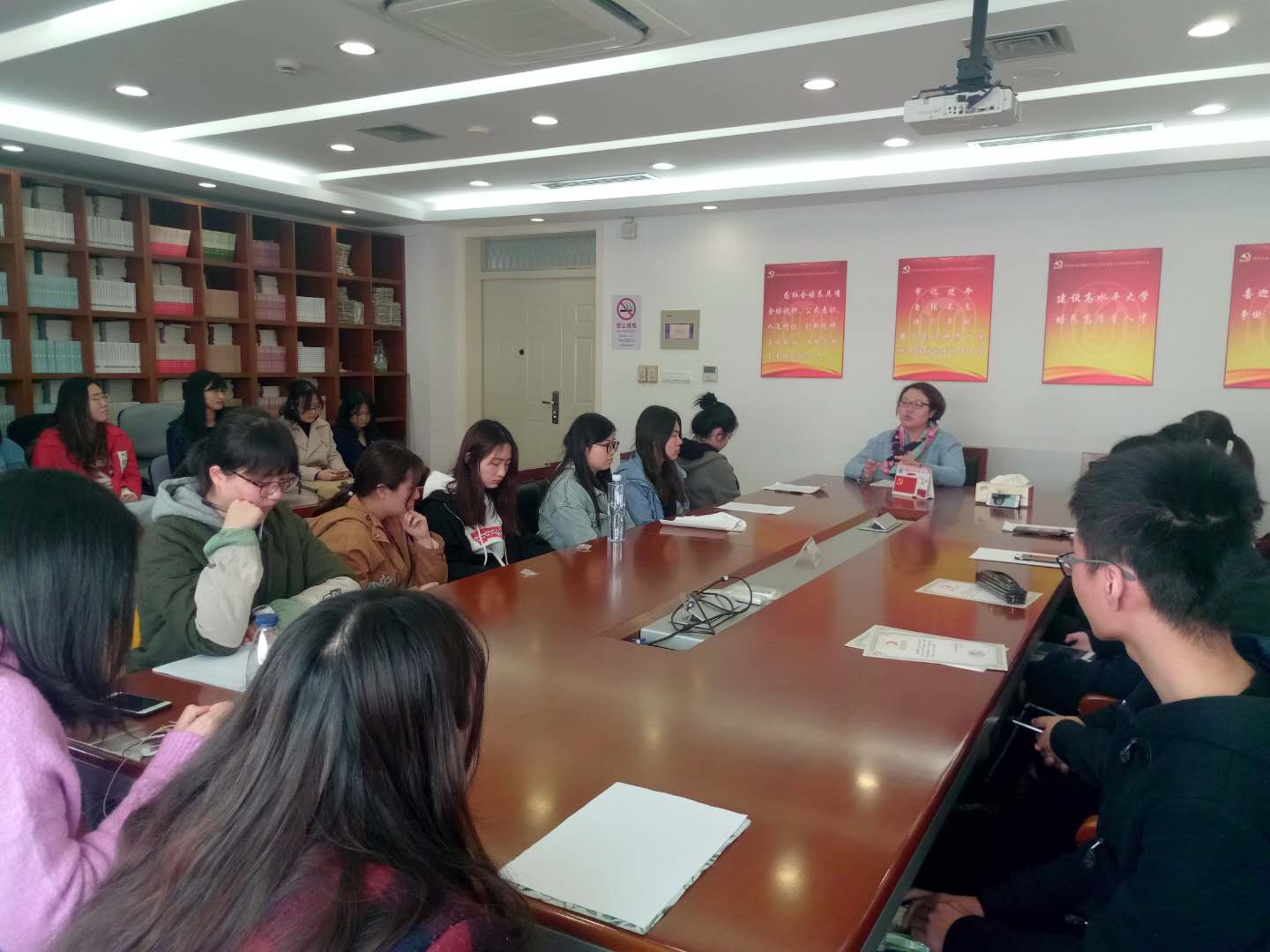 3月24日中午,外国语学院学生第一党支部在宝山校区C512会议室召开了党支部组织生活会,会议主要包括确定入党发展对象人选,以及交流“学习强国”APP的学习心得体会。会议由支部书记、本科生辅导员朱一佳老师主持,本科生党员及发展对象共同参加了本次会议。