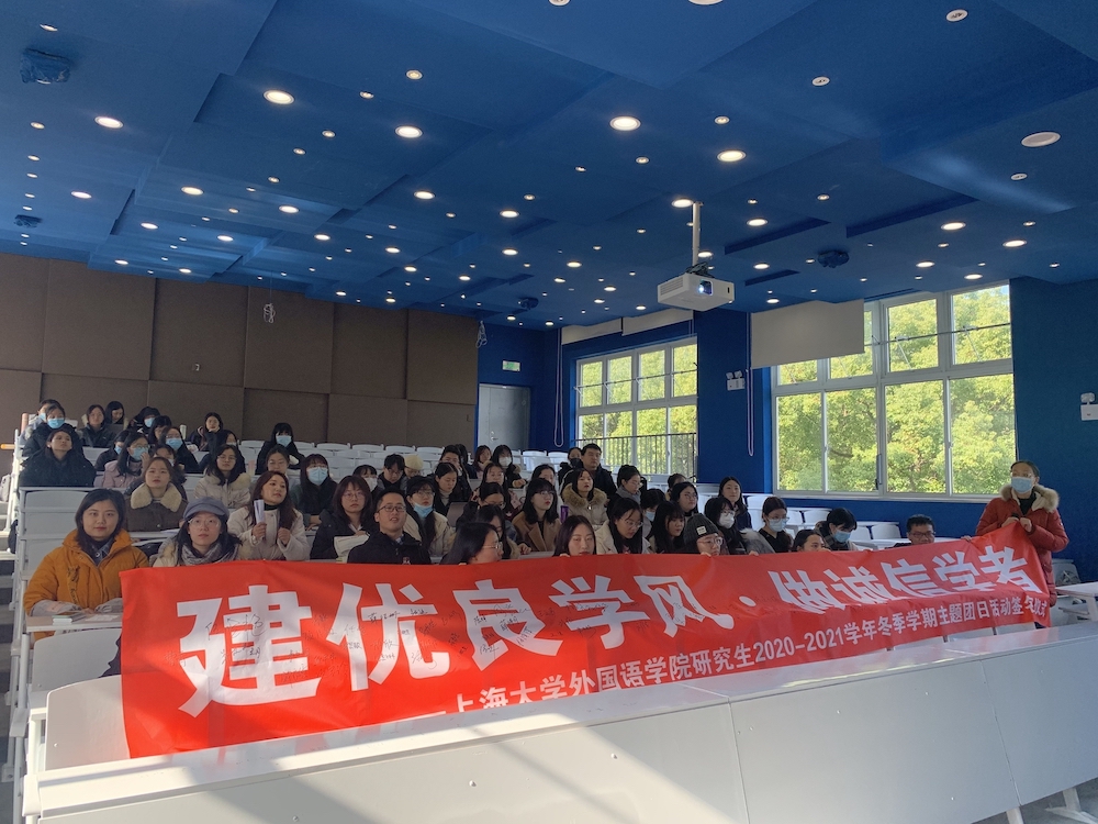 为响应优良学风建设,12月15日周二上午9:00-11:00,外国语学院研究生团总支在嘉定校区第二教学楼212教室举办了“建优良学风,做诚信学者”的签名仪式,并且特邀18、19级的学长学姐们为2020级同学们做学术经验分享。此次分享会由程令美、周焱主持,研究生辅导员曹若兰和2020级全体研究生参加了本次活动。
