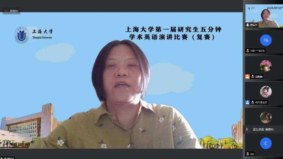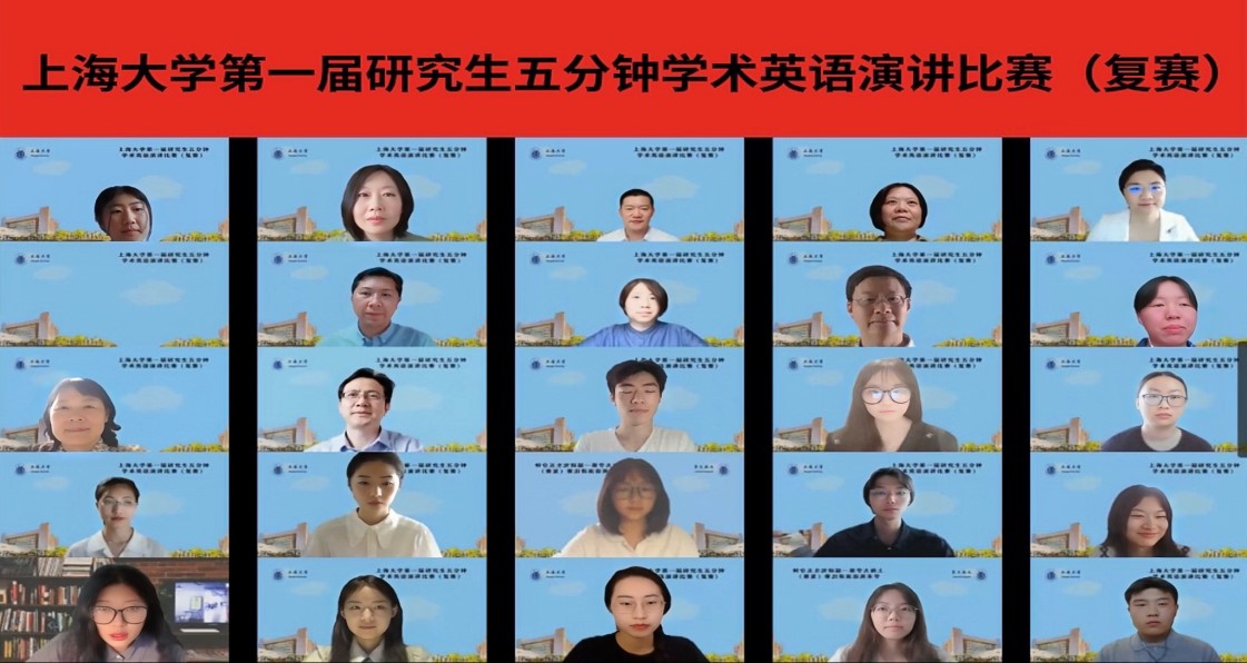 2022年6月22日下午,上海大学建校100周年纪念活动—-上海大学第一届研究生五分钟学术英语演讲比赛(复赛)成功举行。比赛由上海大学外国语学院主办,指导单位为上海大学研究生院、上海大学党委研究生工作部和上海大学国际部。