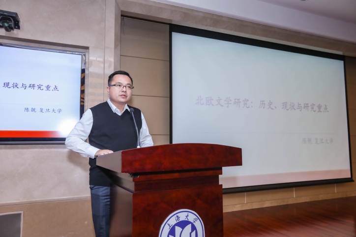 第三位演讲人是复旦大学外文学院的陈靓教授,他的题目是“北欧文学研究:历史、现状与研究重点”。讲座由浅入深,从西方学界以及中国学界对北欧文学史的研究介绍入手,在对北欧五国文学史进行了国别梳理后,分析了研究中的主要问题和当前的研究重点,并对北欧文学的未来发展进行展望。目前,尤其是国内对北欧文学的研究主要有缺乏时代性主题、系统性研究论著、批评视角前沿性不足、话语权建设滞后、学科化建设落后以及缺少中国和北欧文学的比较研究成果等问题。讲座中提到目前北欧文学的研究重点要从文学主体性出发对北欧文学整体性把握,可以从文学地理、神话传统、生态理念、全球化语境下的改编与迁移等角度切入。讲座还提到对北欧文学批评思想的挖掘以及比较视域下中国文学与北欧文学的互动研究等领域。