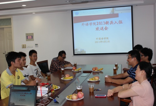 王文豪同学为2012级英语专业的学生,也是今年外院唯一一位通过了层层考验,成功入伍的学生。在会上,王文豪首先发言,表达了自己志愿入伍的决心,同时觉得能够入选非常光荣。随即,学院老师们与王文豪亲切交谈,询问他的家庭情况、参军动机和今后的理想。此后,退伍的"老兵"分享了自己的部队学习、工作与生活,为将要踏入军营的"新兵"提出了一些建议。辅导员汪旭娟与王国建副书记代表学院为王文豪同学赠送鲜花和一些书籍,并嘱咐他在军营里也能严格要求自己,努力提高自己的文化知识。最后,施雯书记以长辈的身份送上嘱托,希望他能在军营这个大学校里好好锤炼自己。