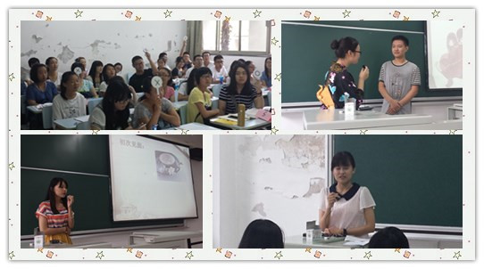 社团课程于上午九点准时开始,共设置五个环节。在一段精彩的社团视频之后,现任社长为同学们详细介绍了社团背景、现状、活动资讯等,进一步加深了同学们对同好会的认识。随后,分别由社团骨干成员带来《动漫日语》以及《日本神话》课程,内容丰富精彩、贴合学生兴趣、更穿插了生动的现场演绎,赢得了同学们的一致喜爱。《知识竞赛》环节同学们以小组形式参与比赛,内容多为日本文化常识,让同学们在竞赛的同时也掌握了不少日本文化知识。最后,留学归来的前辈们也在第一时间为新生们准备了分享交流环节,畅谈他们的留学经验与感想,并为新生们接下来的大学生活提出宝贵建议。同学们纷纷表示获益良多。
