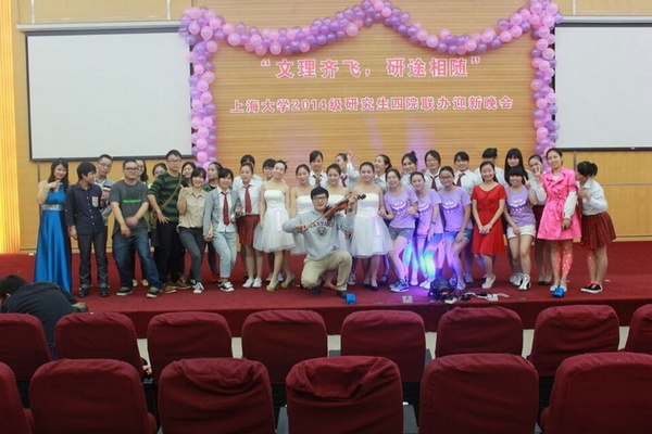 10月13日晚,由上海大学外国语学院、文学院、计算机学院和生命科学学院四院联合举办的"文理齐飞,研途相随"——2014级研究生新生迎新晚会圆满落下帷幕。出席此次晚会的有各学院的领导和老师以及四个学院近400名研究生新生。