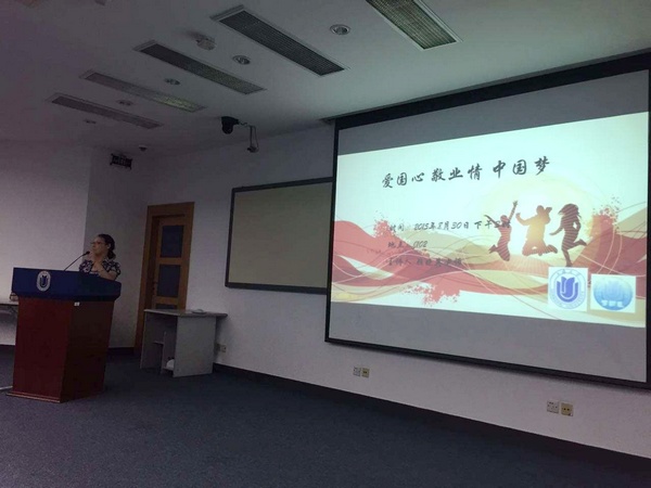盛夏八月,上海大学外国语学院2015学年秋季学期首日教育于8月30日举行,下午"与顾晓英老师面对面"讲座活动在J102展开,我院13、14级全体学生和辅导员参加。顾晓英老师作为上海大学思想政治学科领域的专家人物,言语睿智、引人深思。顾老师以"爱国心、敬业情、中国梦"为主题,介绍了特色课程"大国方略",启发新一代大学生思考未来发展方向。