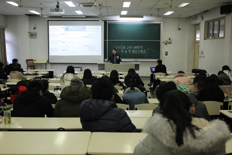 下午15:30,2015级全体本科生集聚Cj203教室如期进行本次首日教育的第二场活动。步入大三的冬季学期之际,许多同学对于自己的人生规划较为迷茫以及对于一份优秀的简历的制作不甚了解,为了帮助同学们尽早确定人生规划,了解简历的制作以及留学的相关信息,2015级本科生辅导员梁苗老师邀请来自上海大学莘远留学的王字海老师为同学们开展了关于人生规划、留学规划以及简历制作的讲座。