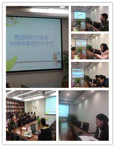 首先,辅导员汪旭娟老师直接进入正题,通过解读党的十九大报告的相关内容,引出新时代下我们大学生的使命,又结合马斯洛的需求层次理论,希望我们能做一个精神富有的人。汪老师希望大家在大学生活里尤其要重视多阅读、多听讲座等良好习惯的养成,要注意通过参加活动、进行社交等进行能力的提升。汪老师谆谆教诲,希望同学们能做一个志存高远、把握当下、永不气馁的人。