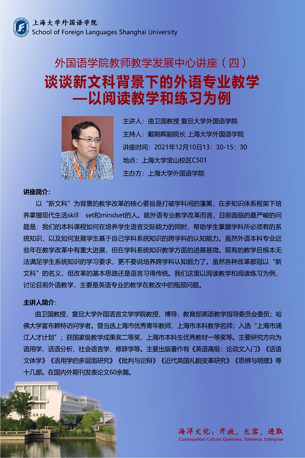 外国语学院教师教学发展中心讲座(四)谈谈新文科背景下的外语专业教学--以阅读教学和练习为例