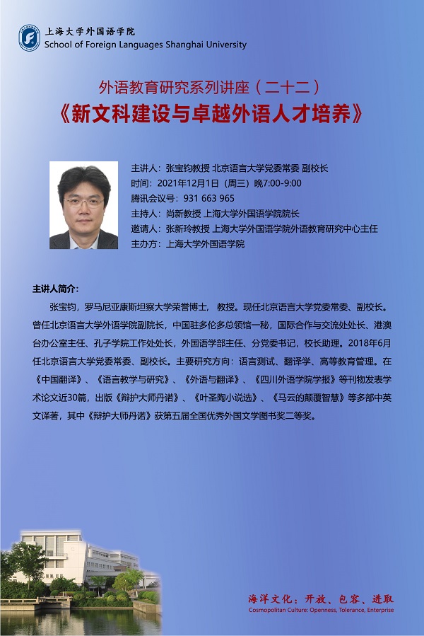 外语教育研究系列讲座(二十二)《新文科建设与卓越外语人才培养》