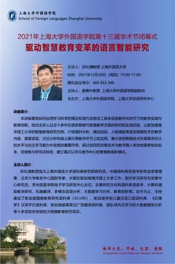 2021年上海大学外国语学院第十三届学术节闭幕式 驱动智慧教育变革的语言智能研究