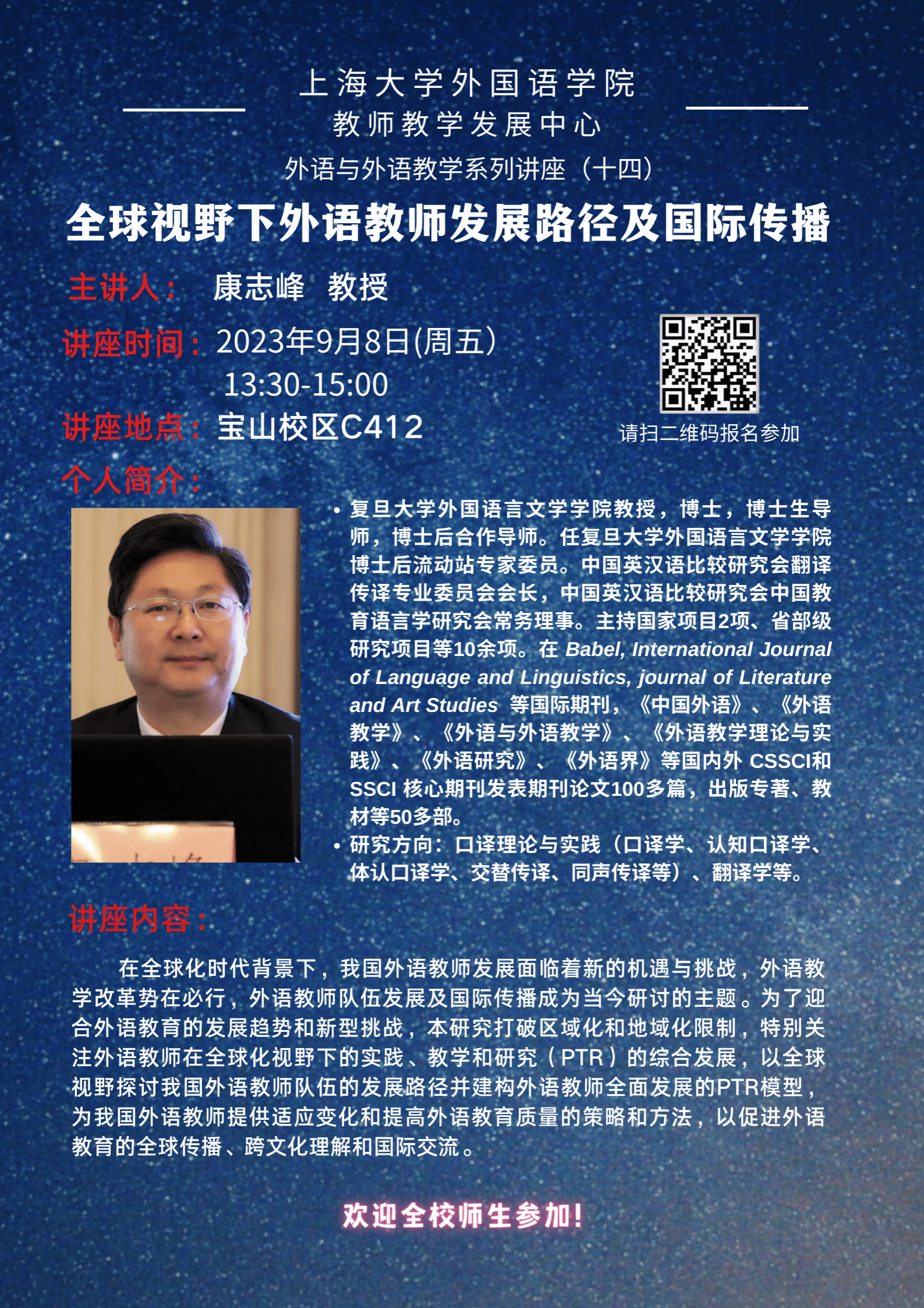 外国语学院教师教学发展中心讲座(十四)全球视野下外语教师发展路径及国际传播