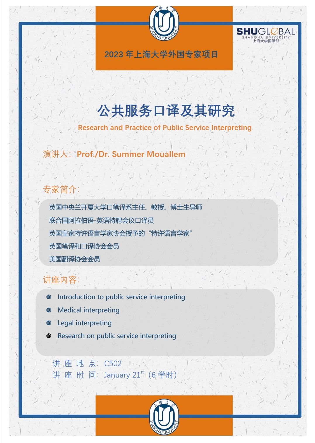 2023年上海大学外国专家项目:公共服务口译及其研究